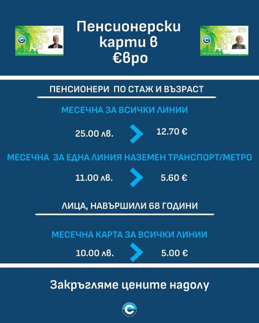 Новите цени за картите за градския транспорт при пенсионерите по стаж и възраст, за хората, навършили 68 години, както и за хората с увреждания