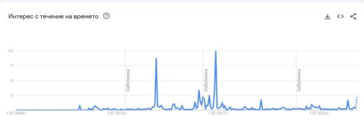 Интересът към темата „референдум“ от 1 януари 2004 г. досега / Google Trends