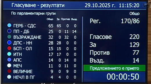 За гласуваха 129 депутати, против 77 и въздържали се 14.